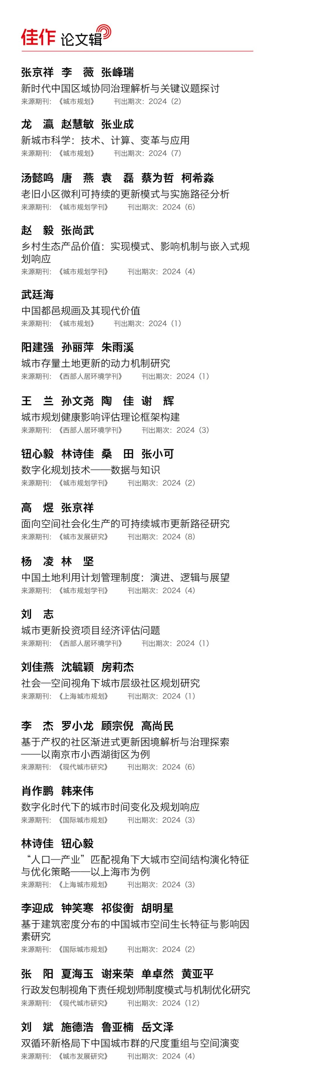 由中国城市规划学会(以下简称学会)和金经昌/董鉴泓城市规划教育基金(以下简称基金)联合主办的2025年“金经昌城市规划优秀论文遴选”活动圆满落幕。本次遴选活动由学会和基金联合邀请8家具有正式刊号并在国内城市规划研究领域内具有较强影响力和代表性的学术期刊共同参与,分别为《城市规划》《城市规划学刊》《国际城市规划》《城市发展研究》《现代城市研究》《上海城市规划》《西部人居环境学刊》及《城乡规划》。